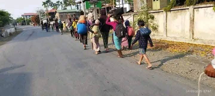 ” ကလေး_ တမူးလမ်းက အားလုံးရှောင်ကြရတယ်၊အခုက မိုးတွေ ရွာနေတယ်။ကလေးတွေ လူကြီးတွေလဲ ဘာမယူနိူင်ဘဲ ပြေးလာကြရတယ်၊စာသင်ကျောင်းတွေလဲ လူတွေက ပြည့် ၊ဘုရားကျောင်းတွေလဲ လူတွေက ပြည့် ၊ဘယ်နေရာကို ထားရမယ် မသိဖြစ်နေတယ်။ ထမင်းက တချို့မိသားစုတွေ မစားကြရဘူး။ထမင်းက ချက်လို့ မရ။ မီးခိုးထွက်ရင် လက်နက်ကြီးနဲ့ထုမှာ ကြောက်လို့ “