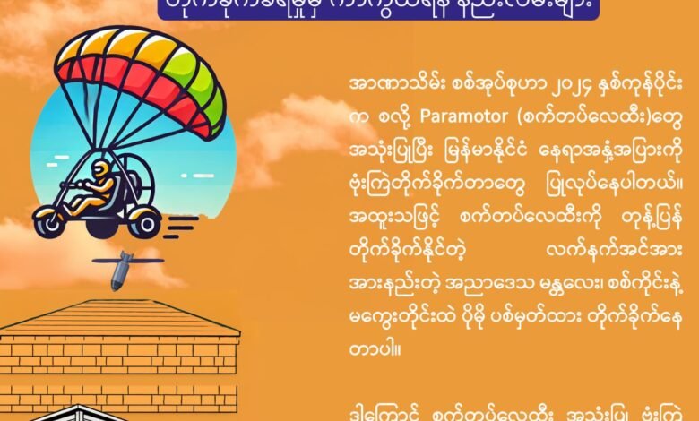 Paramotor (စက်တပ်လေထီး) အသုံးပြု ဗုံးကြဲတိုက်ခိုက်ခံရမှု ကာကွယ်ရန် နည်းလမ်းများ